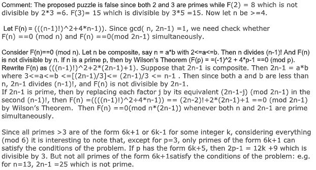Thus, 2n - 1  divides  F(n) , it cannot be composite (but it can be  1).