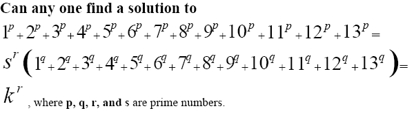 He sent one solution with (p,q,r,s) = (5,3,2 11)