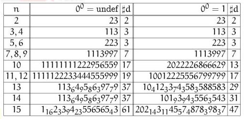 the relation for 0..k where k ranges from 2 to 15. The values are reported in the attached table. Since the numbers are quite long (up to 61 digits for the case