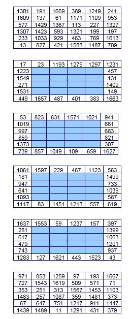 Problems & Puzzles: Collection 20th ![]() Coll.20th-010. Find the core of a magic cube On March 29 2018, Natalia Makarova wrote: It is required to complete the concentric magic cube of order 6 from different primes with the magic constant S = 5040, placing the magic cube of order 4 with the magic constant S = 3360 inside. See the illustration (Fig.1)