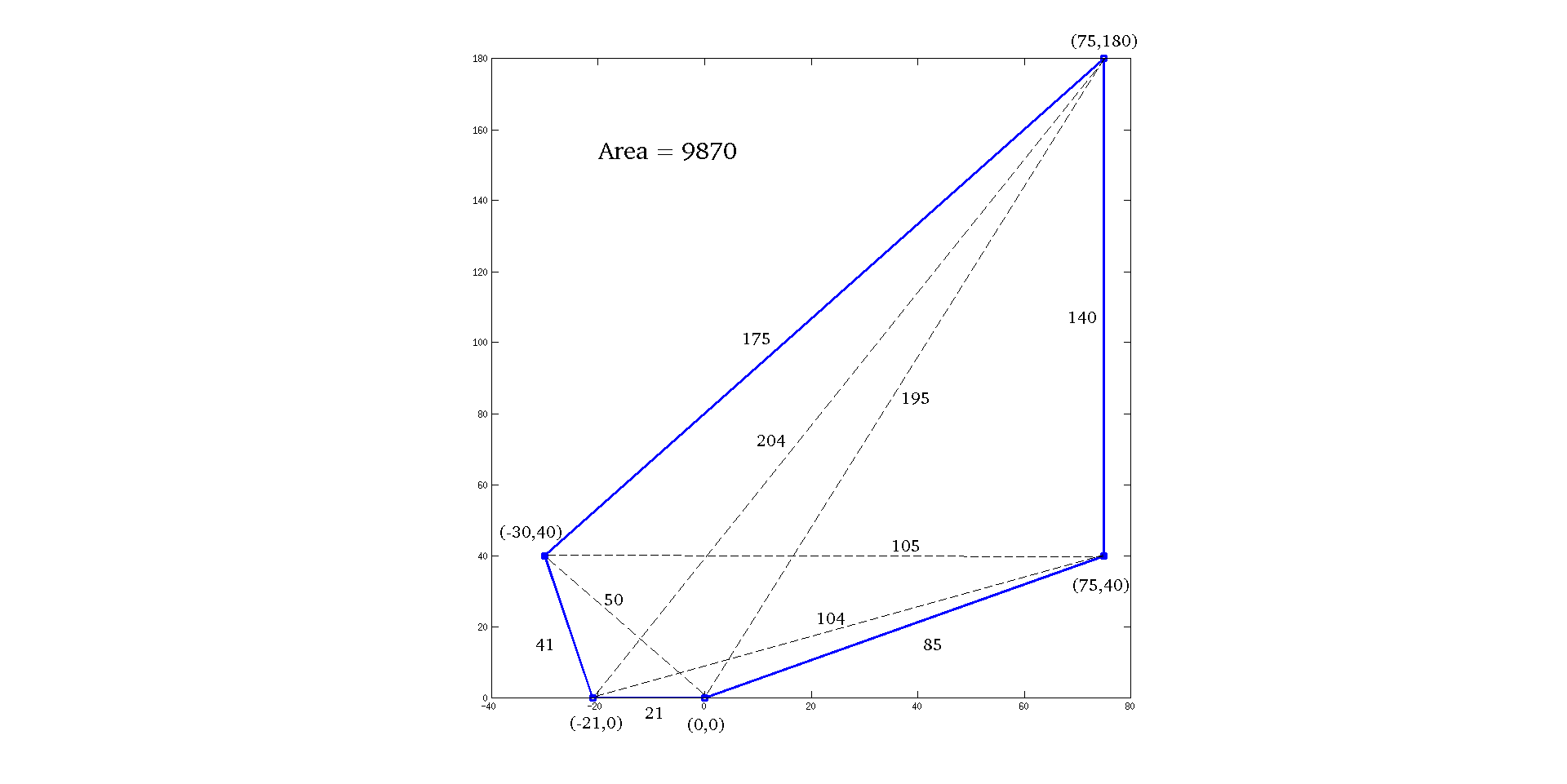 = 175, DE = 41, EA = 21, AC = 195, AD = 50, BD = 105, BE = 104, CE =