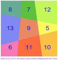 Q2. Is there another geometrical simple scheme to approach -other than the Trump's one-to the original William's aim: (looking for a scheme such that these 9 cells could be drawn in a simple way and that the geometrical area of the 9 cells, were in correspondence to the 9 integers contained in them)